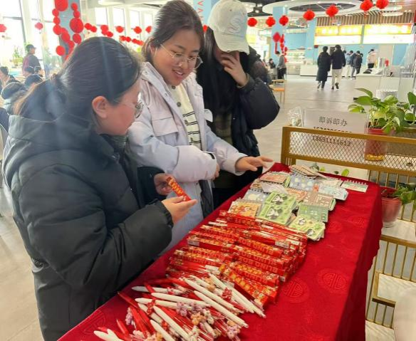 同学们驻足思考、交流讨论,或凝神推敲,或相互启发。猜对灯谜的同学可领取精美小礼品,现场气氛热烈、秩序井然。传统民俗与校园生活相融合,让同学们在参与互动中感受中华文化的独特魅力。