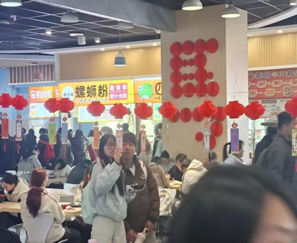 就餐高峰时段,窗口前排起了有序的队伍。一碗碗热腾腾的汤圆递到同学们手中,也送去了学校的关怀与祝福。食堂内灯光明亮、人声鼎沸,同学们围坐而食,在欢声笑语中感受节日的温暖。